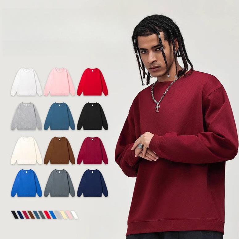 Модный свободный однотонный мужской свитшот с круглым вырезом из смесового хлопка, двусторонний, женский, в корейском стиле, повседневный, с длинным рукавом, базовый свитшот для пары