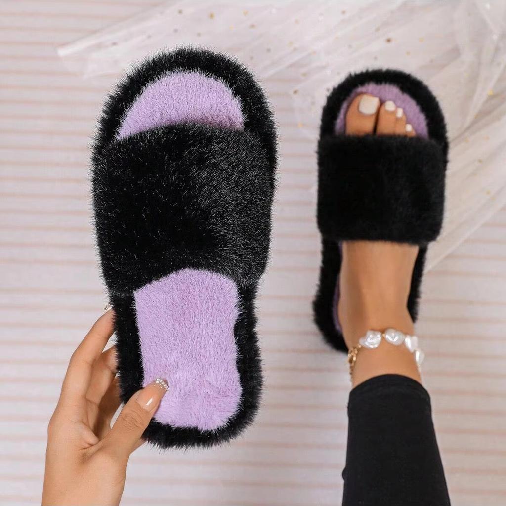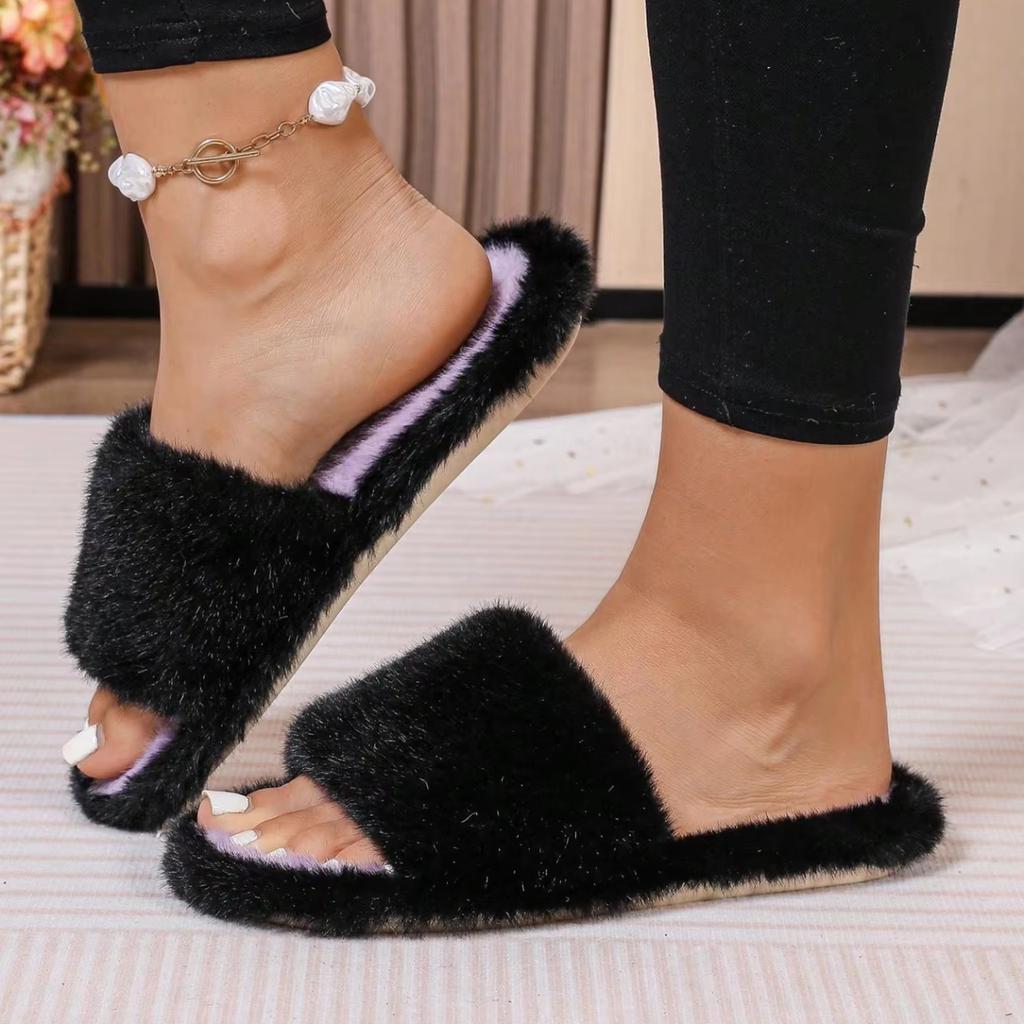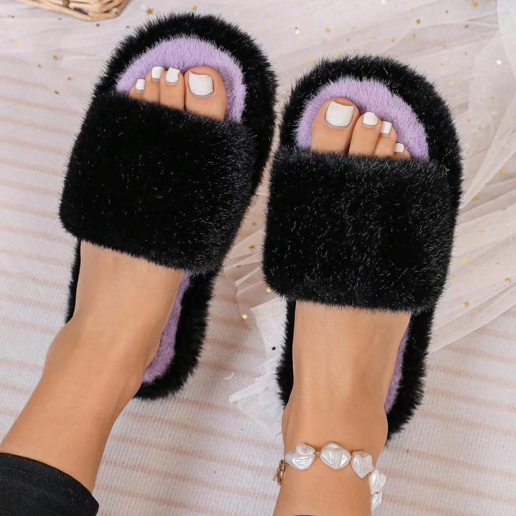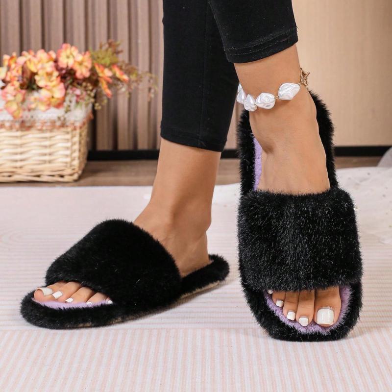 Милые классические женские тапочки Повседневные плоские на низком каблуке Базовая обувь Женские Однотонные Меховые Короткий плюш На шлепанцах Зимние шлепанцы Большой размер