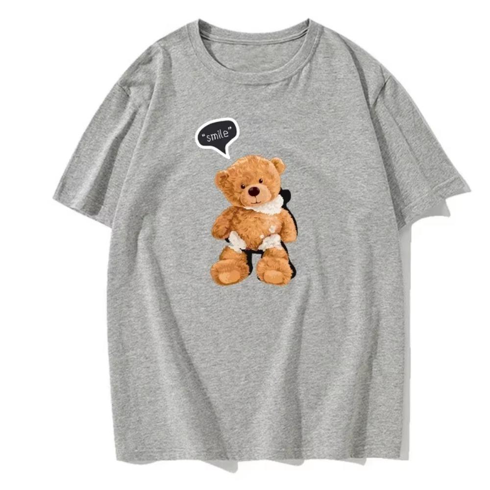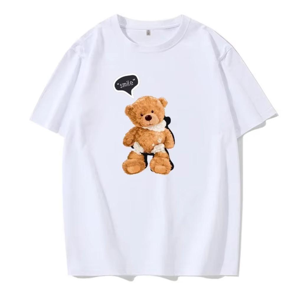 Мужская/Женская Летняя Футболка с Коротким Рукавом Милый Принт Улыбающегося Медведя Модная Повседневная Трендовая Футболка Дышащая Футболка с Круглым Вырезом