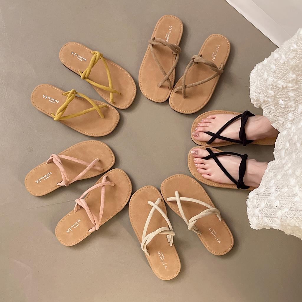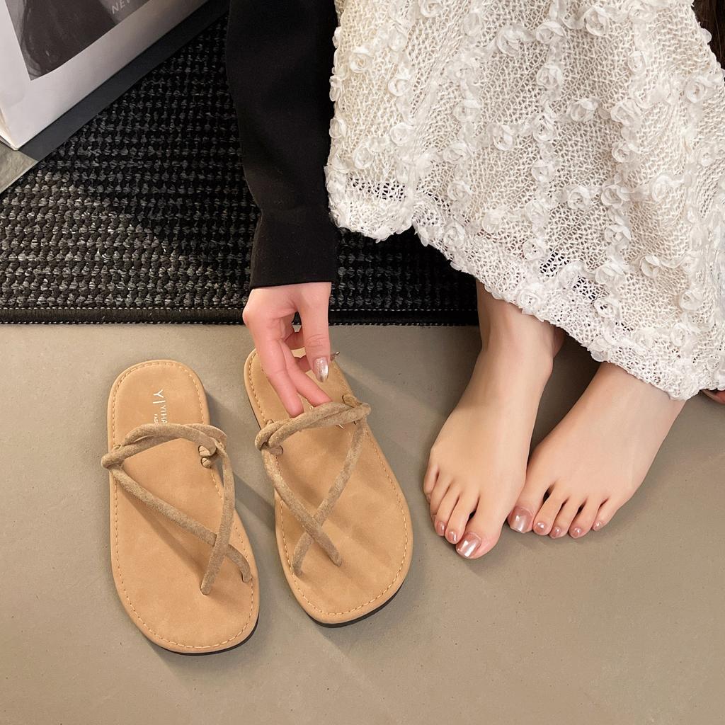 Korean version of retro toe slippers women's summer wear 2025 new versatile casual flat commuter Roman sandals