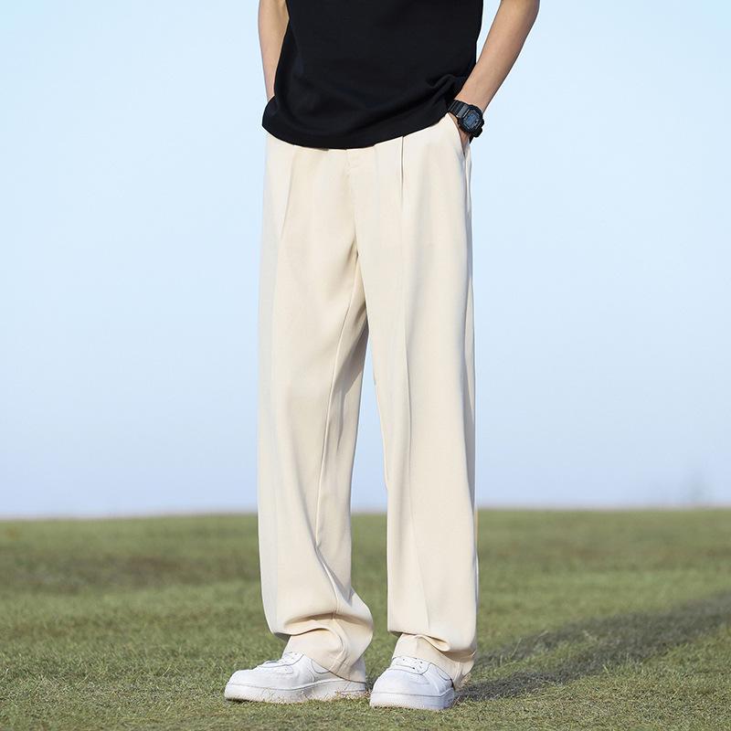 Мужские брюки в корейском стиле, легкие, тонкие, с эластичной талией, полуширокие, свободные, драпированные, костюмные брюки, мужские повседневные брюки