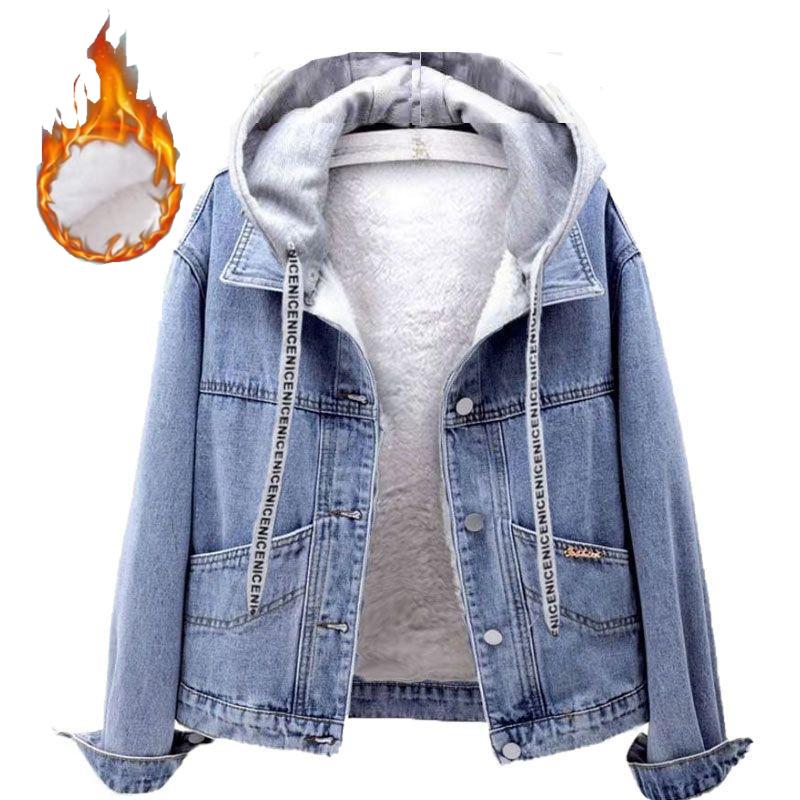 Женская куртка из денима с капюшоном, осенне-зимняя, с утолщенным бархатом, свободные корейские ковбойские джинсы, верхняя одежда, женские топы
