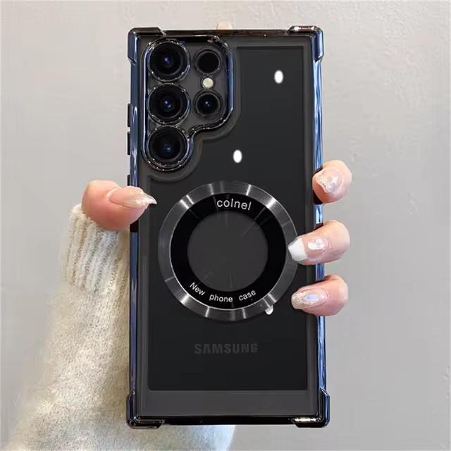 Для чехлов для телефонов с покрытием Magsafe для Samsung Galaxy S25 S24 S23 S22 Ultra S21 Plus FE 5G Note 20 противоударный прозрачный магнитный чехол