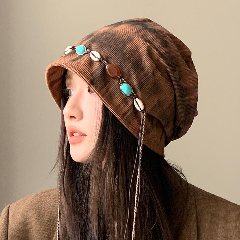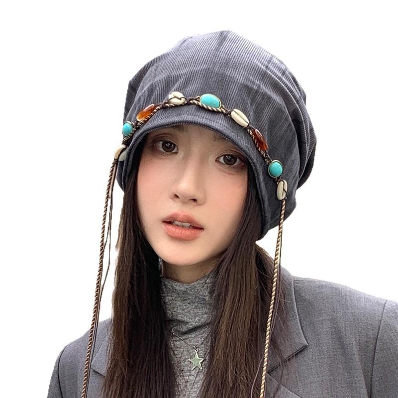 Осенне-зимние шапки, женские, для большого обхвата головы, визуально уменьшающие лицо, теплые шапки, ретро, универсальные шапки для наслаивания, теплые шерстяные вязаные шапки