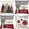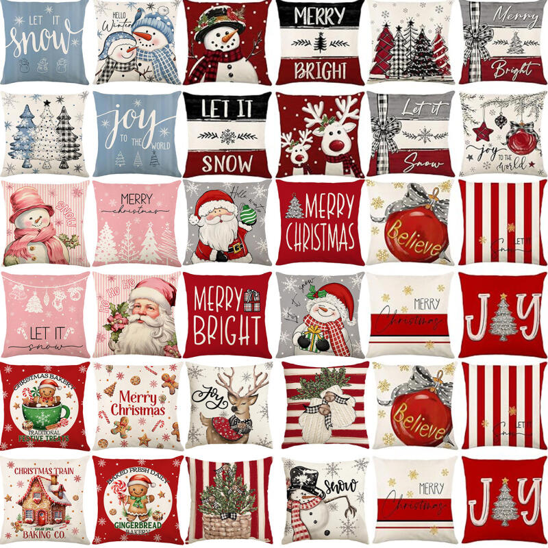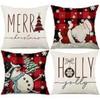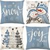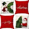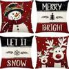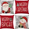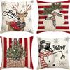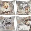 Набор из 4 двусторонних рождественских наволочек - Санта Снеговик Смесь льна Декор для дивана Праздничные акценты для дома