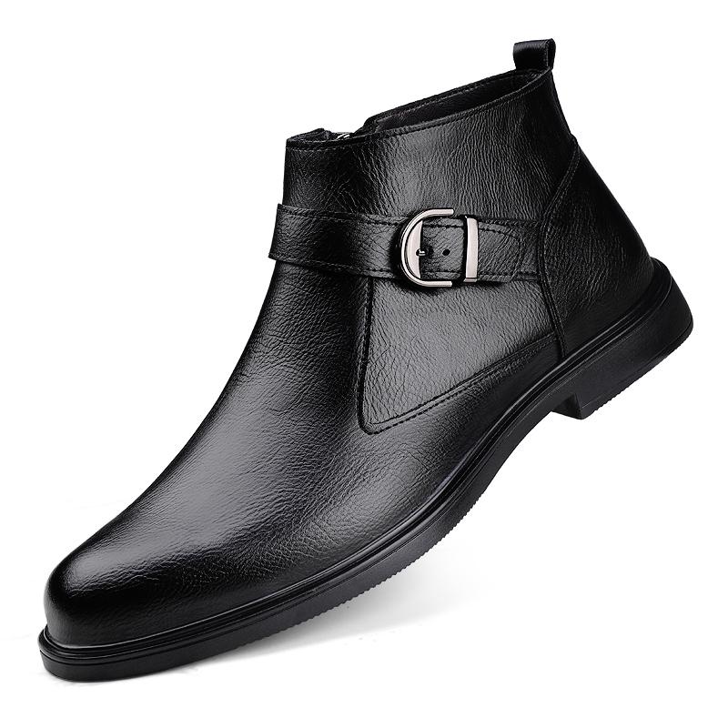 Зимние плюшевые теплые мужские ботинки, деловые, формальные, высокие кожаные туфли, британский стиль, мужские универсальные ковбойские сапоги «челси» на низком каблуке