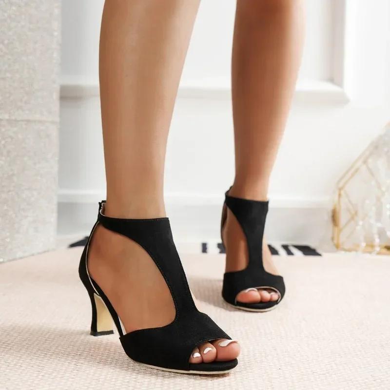 2024 Универсальные модные однотонные женские босоножки Fish Mouth с молнией сзади Сексуальные однотонные удобные туфли на высоком каблуке