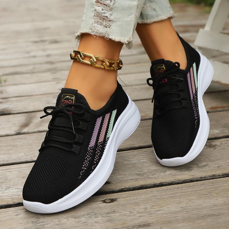 2024 Весна и Осень Модная Женская Обувь Цветные Блоки Мелкий Сетчатый Дышащий Шнуровка Женская Спортивная Обувь