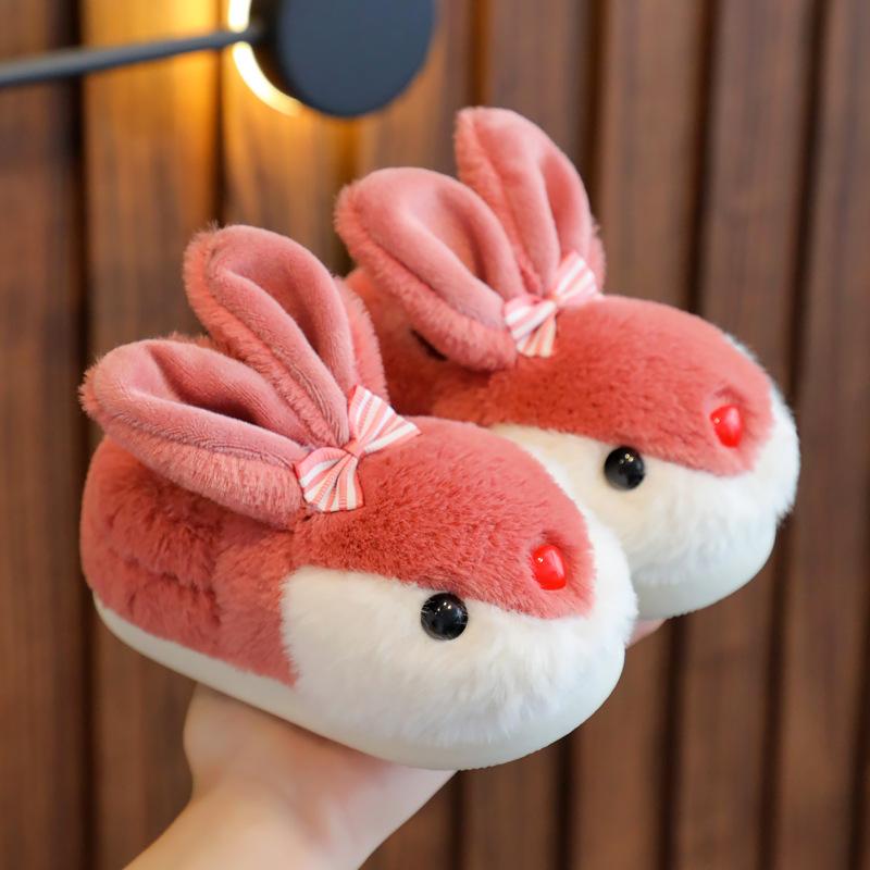Новые детские тапочки для дома, милые зимние тапочки с кроликом для девочек, модные теплые пушистые детские повседневные хлопковые тапочки для мальчиков с рисунком из мультфильмов