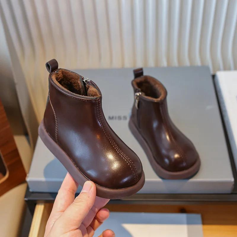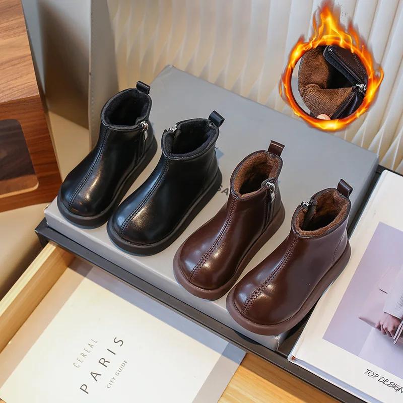 Обувь для девочек Ботильоны Зимние ботинки Маленькие девочки Хлопковые ботинки Нескользящие модные туфли Детские кожаные ботинки для девочек Zapatos Niña