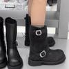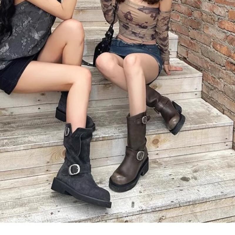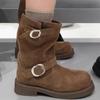 Зимние Горячие Продажи Женские Сапоги 2024 Высокое Качество Однотонные Круглый Носок Замшевые Пряжка Толстый Каблук Женские Короткие Модные Сапоги