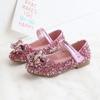 Детская кожаная обувь для девочек, малышей, больших детей, модельные туфли для свадебной вечеринки, блестящая ткань с пайетками и бантом, Мэри Джейн