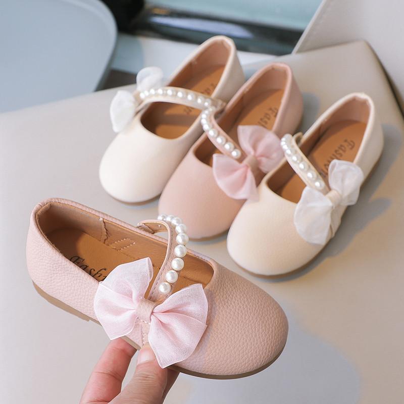 Детские туфли Мэри Джейн для вечеринки, свадьбы, элегантные детские туфли принцессы с бантом, жемчугом, туфли на плоской подошве из кожи с круглым носком
