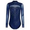 Женские водолазки с длинным рукавом, прозрачные блестящие леотарды со стразами, костюмы для гимнастических выступлений