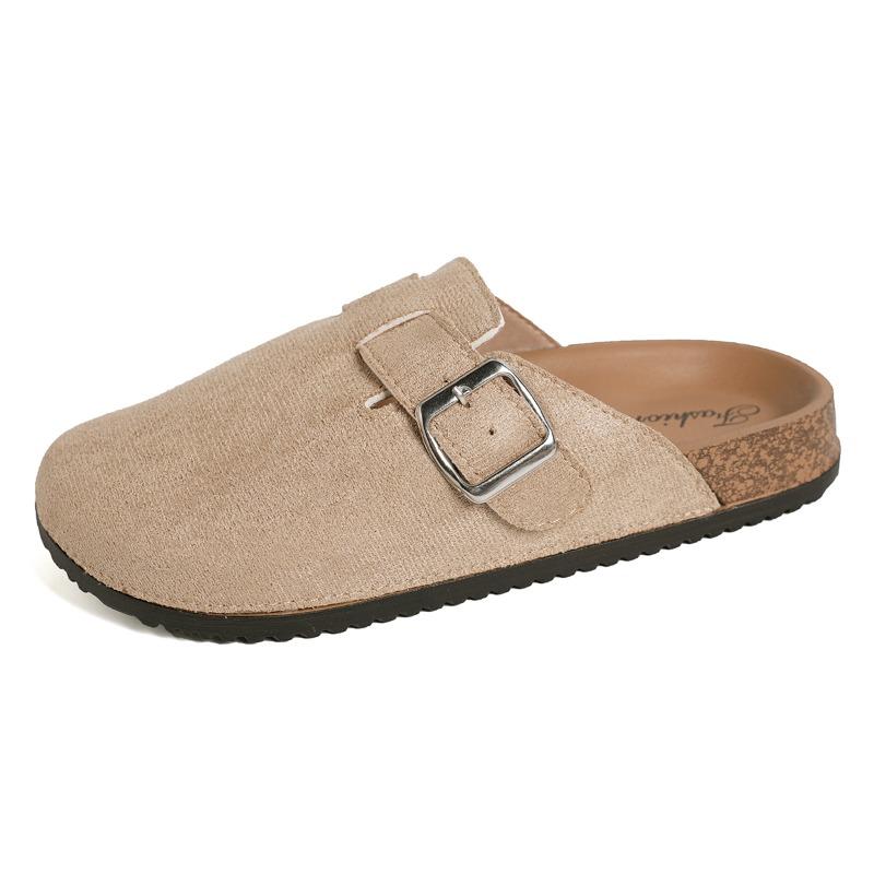 Обувь для женщин 2024 года, горячая распродажа, женские тапочки с пряжкой, весенние, закрытый носок, однотонные, флоковые, на низком каблуке, повседневные тапочки-мюли