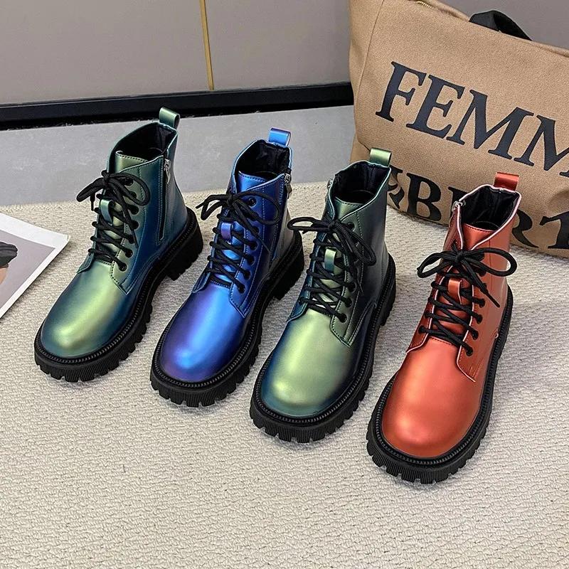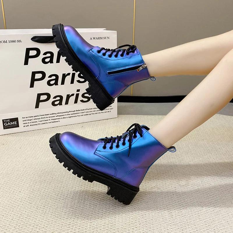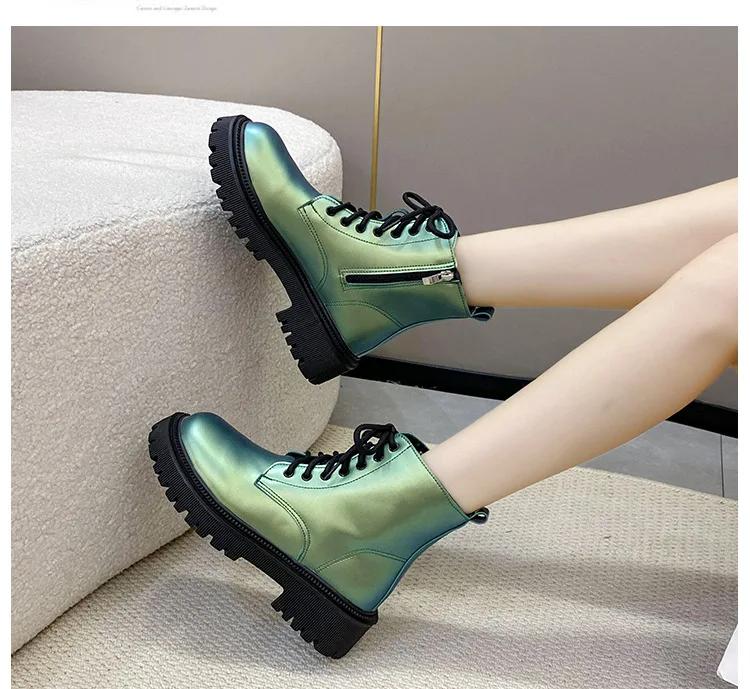 Женские ботинки в британском стиле, модная женская повседневная обувь, ботинки на платформе, осенне-зимние женские ботинки, нескользящие ботильоны для женщин
