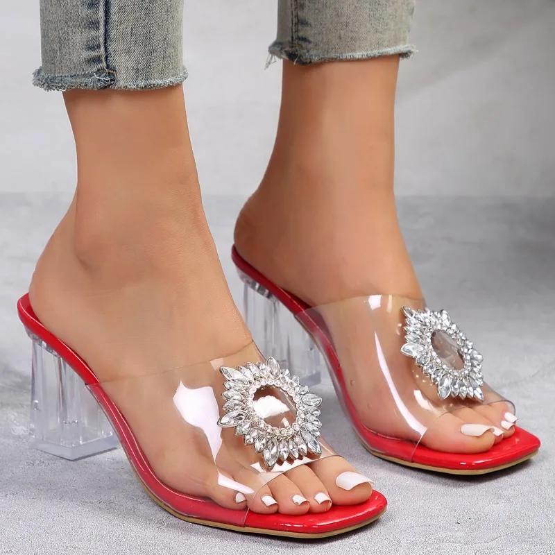 Женская обувь больших размеров 2024 года, летние новые модные прозрачные женские тапочки, повседневные вечерние шлепанцы на высоком каблуке Zapatillas Mujer