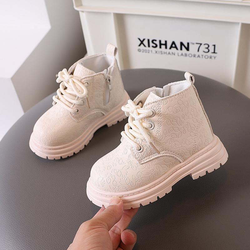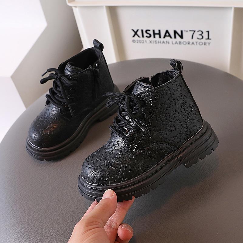 Детские осенние ботинки Новые Нескользящие Ботильоны для девочки Толстая подошва Универсальные Детские Повседневные Школьные Черные Кожаные Ботинки Круглый носок