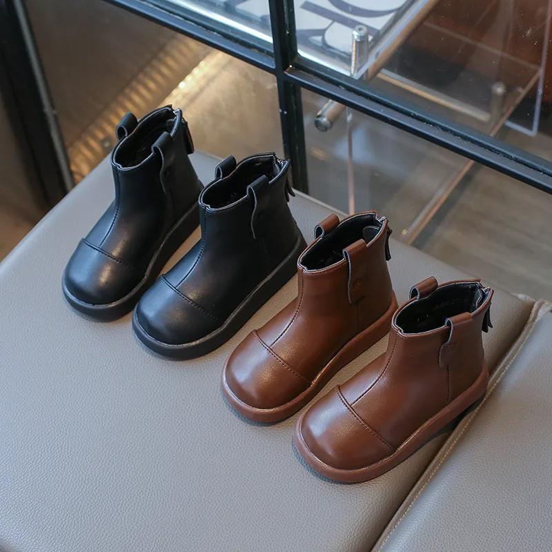 Детские ботинки для девочек Мягкая подошва Малыши Школа Черные ботинки Модные Универсальные Повседневные Детские ботильоны Матовая ПУ кожа