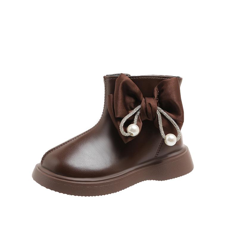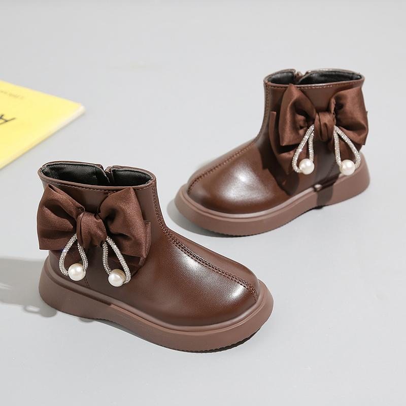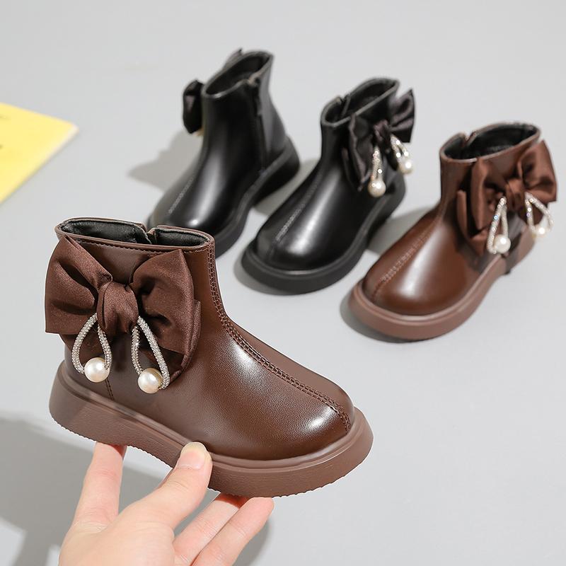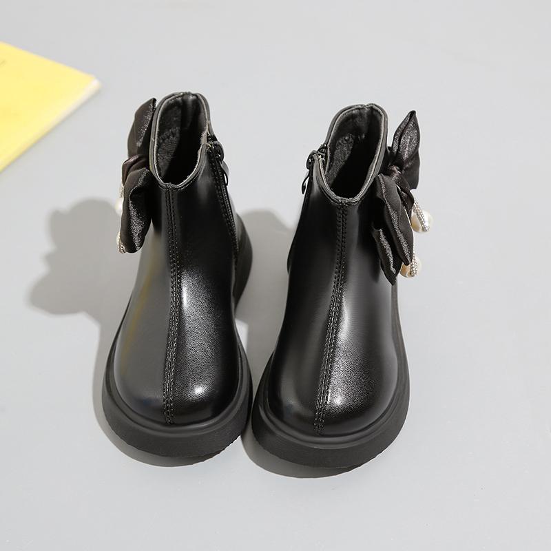 Милые ботильоны принцессы для девочек, шикарные детские модные ботинки с бантом, весна-осень, универсальные детские повседневные короткие ботинки на толстой подошве