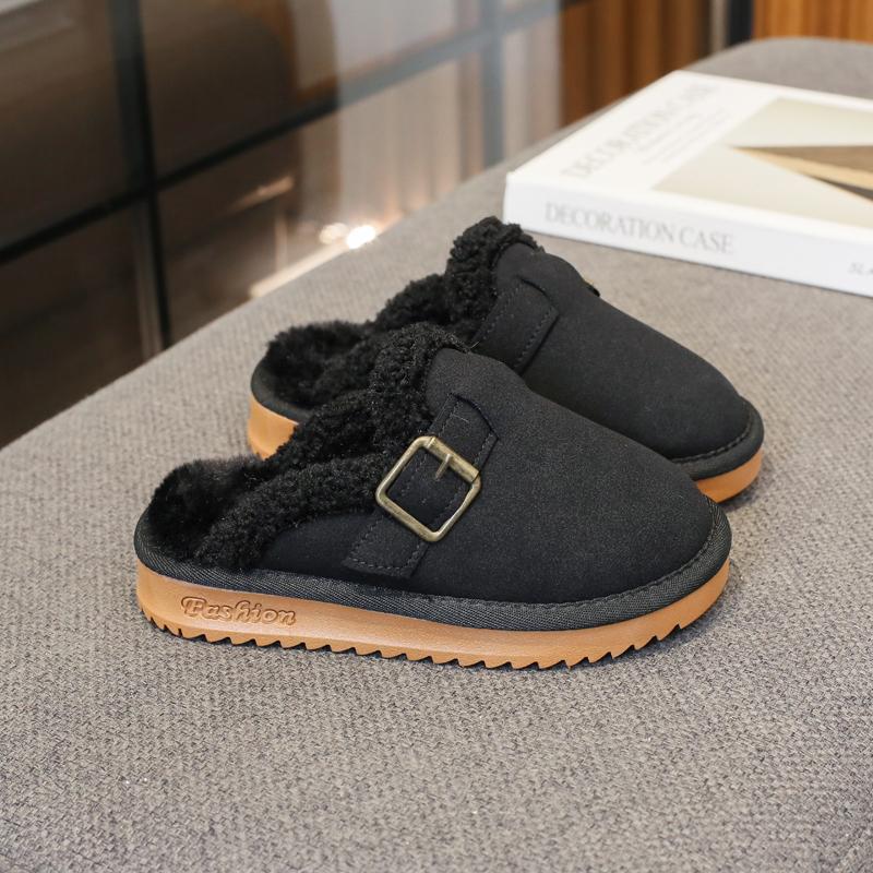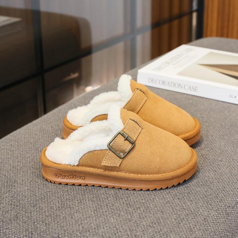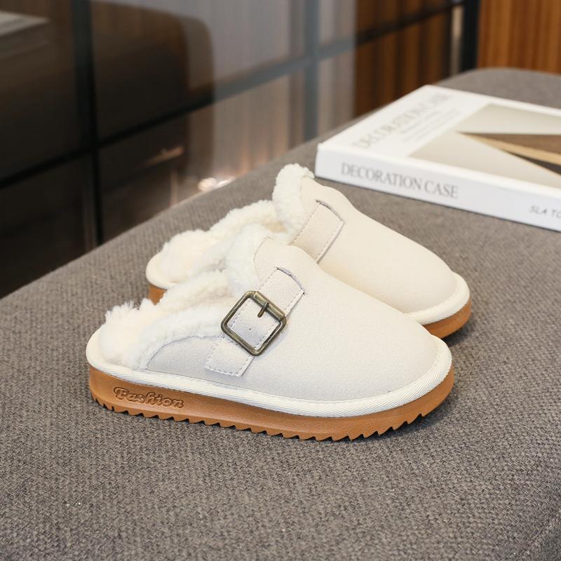 Меховые тапочки с обтянутыми пальцами для девочек 2024 года, детская осенне-зимняя новая удобная повседневная домашняя утепленная зимняя обувь для мальчиков в корейском стиле