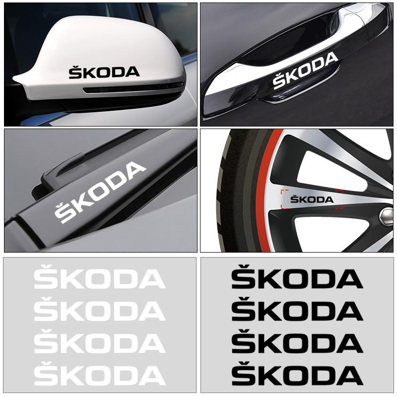 4 шт. наклейки на дверные ручки автомобиля, наклейки на шины и зеркала заднего вида для Skoda Octavia Superb Rapid Kodiaq Karoq Fabia Kamiq Roomster Citigo — купить товар онлайн с бесплатной доставкой по всему миру!