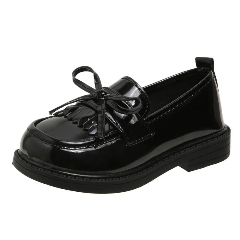 Кожаные туфли для девочек для вечеринки, свадьбы, детские лоферы для школы, мягкая подошва, простая детская мода, кисточки, бант, нескользящая повседневная обувь