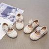 Новые туфли принцессы из кожи для девочек, милые балетки с цветами для вечеринки, свадьбы, модные повседневные детские танцевальные туфли с бантом