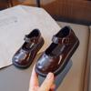 Детская мода Девочки Кожаные туфли Черные Универсальные Мягкие С круглым носком Толстая подошва Школьная форма Обувь Дропшиппинг Детская Повседневная