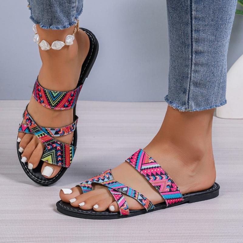 2024 Лидер продаж, модные универсальные женские тапочки с принтом, с открытым носком и тонким ремешком, летняя пляжная обувь с открытым носком — купить товар онлайн с бесплатной доставкой по всему миру!