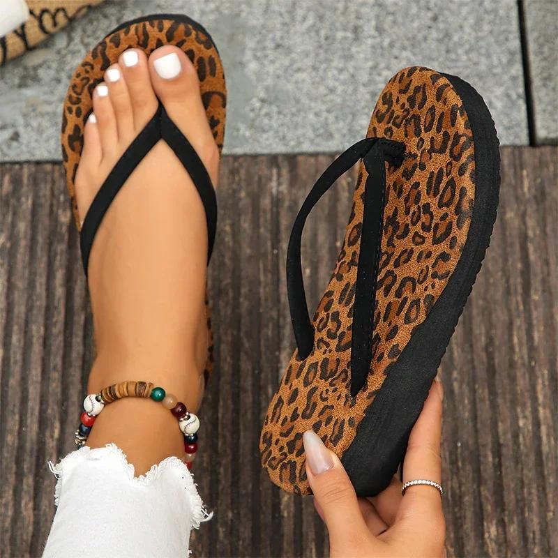 Леопардовый принт Шлепанцы женские на танкетке Летние шлепанцы на толстой подошве Пляжные новинки 2024 года Универсальные модные Шлепанцы Zapatos