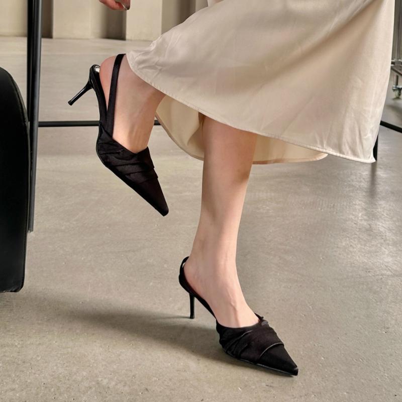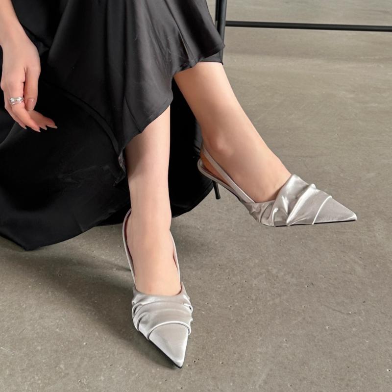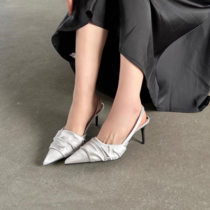 Горячая распродажа Летняя женская обувь Однотонная Острый носок Шпилька Большой размер Банкет Свадьба Пряжка на одной линии Женские туфли на высоком каблуке