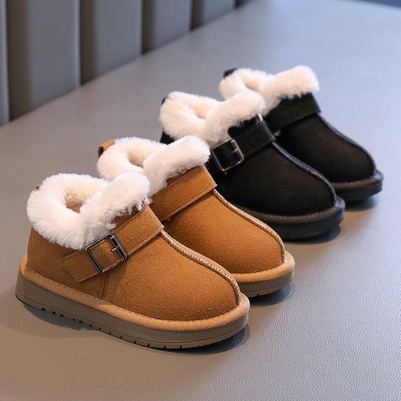 Новые детские ботинки, ботинки для девочек, зимние ботинки для мальчиков, однотонные пушистые детские модные ботинки из хлопка, повседневные, теплые, универсальные