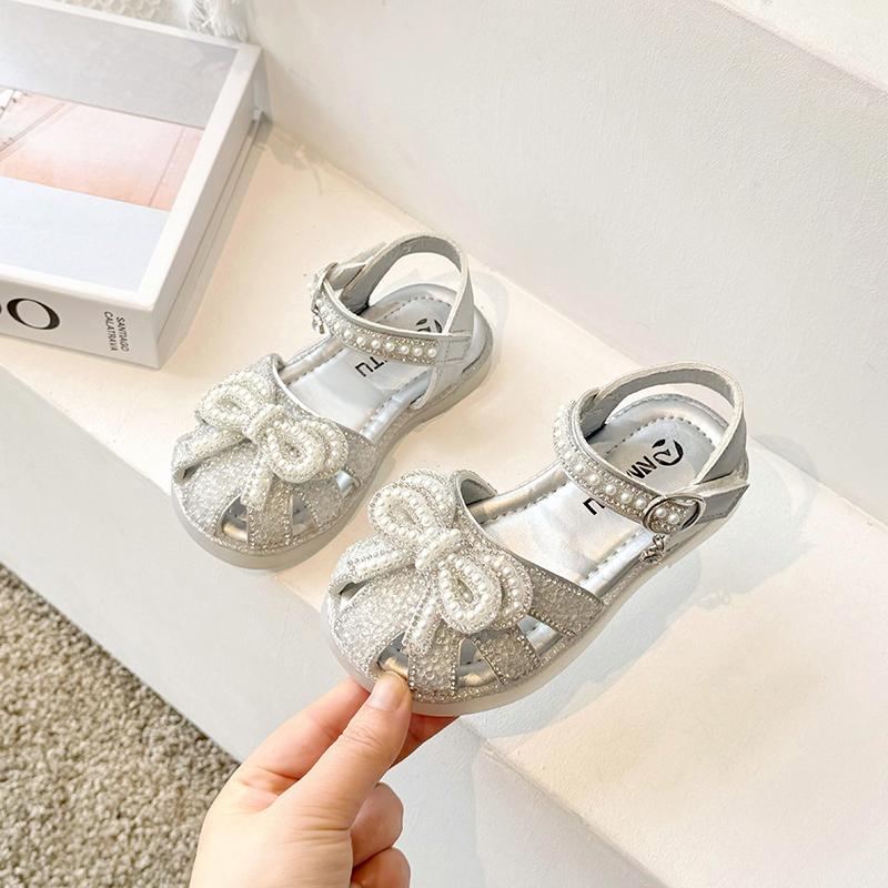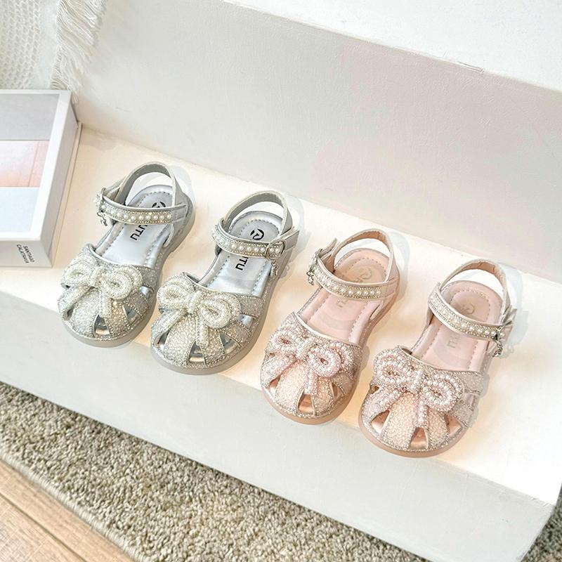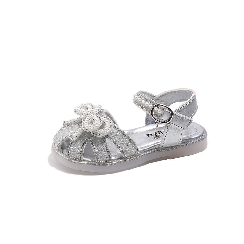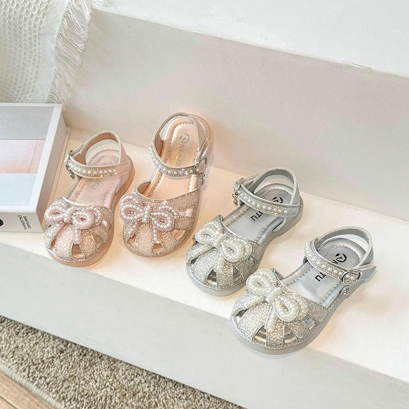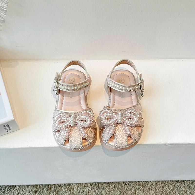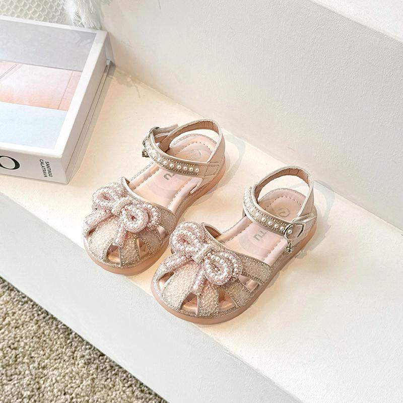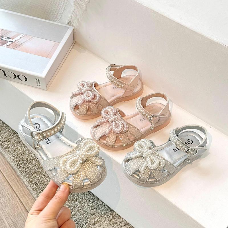 Детские летние сандалии для девочек, туфли принцессы с бабочкой для вечеринки, свадьбы, мягкая подошва, детские туфли с полыми носками и жемчугом
