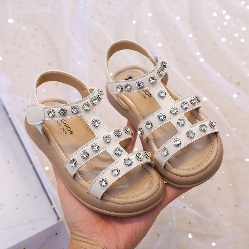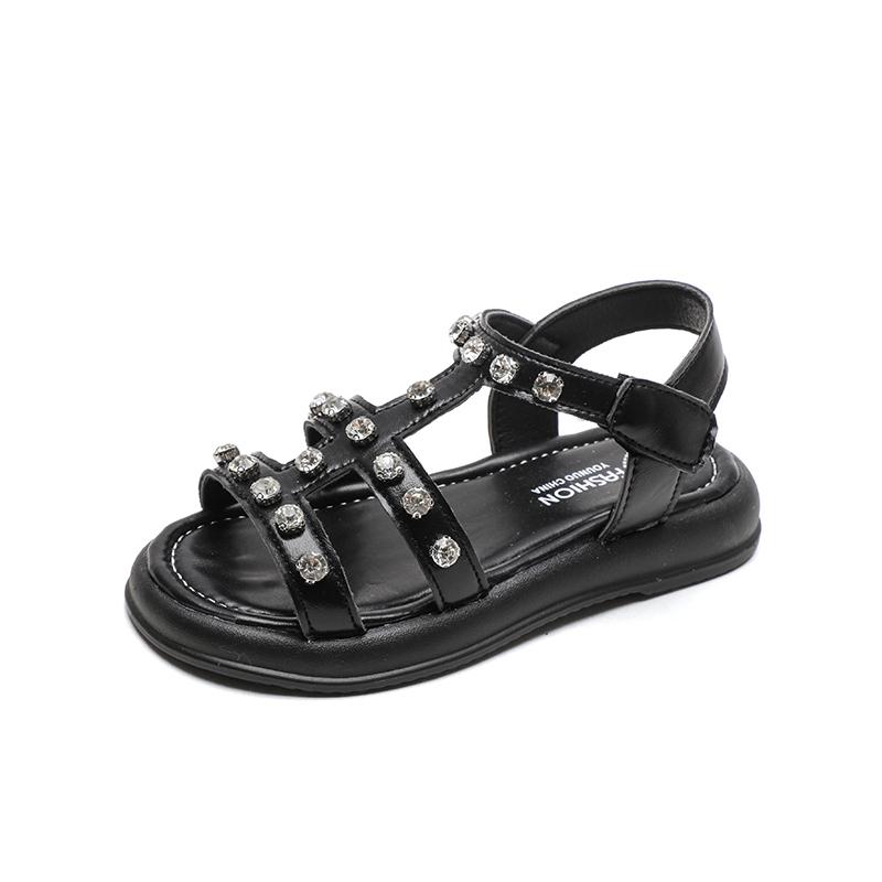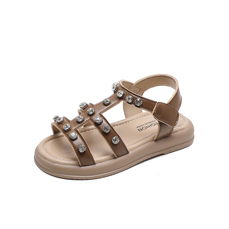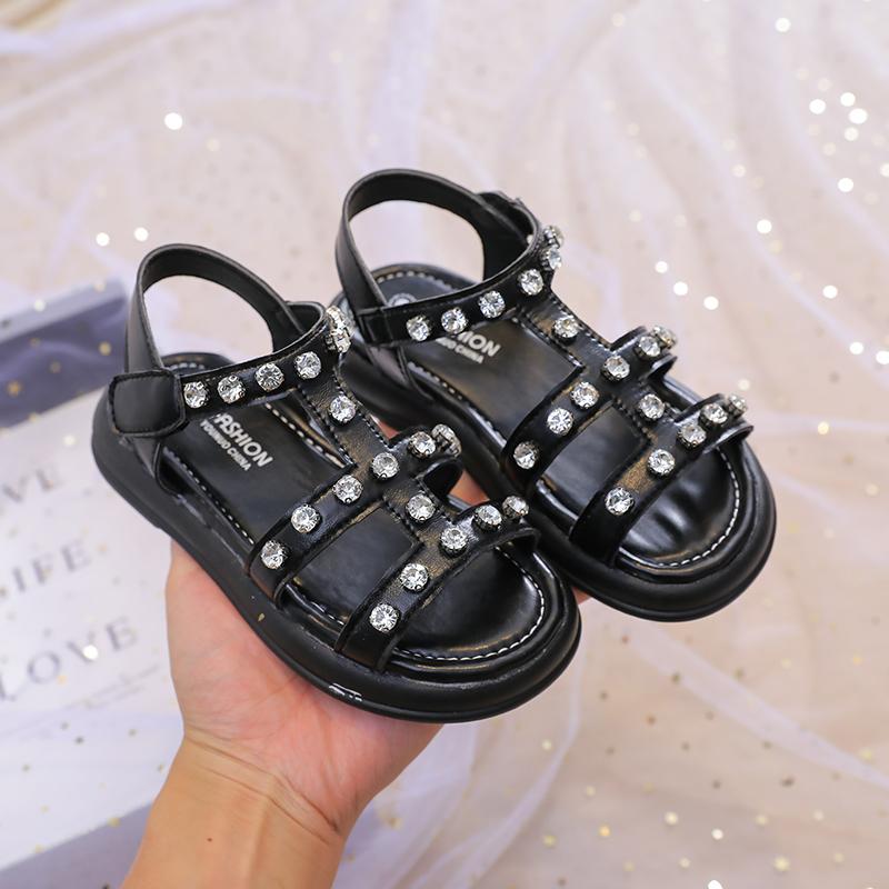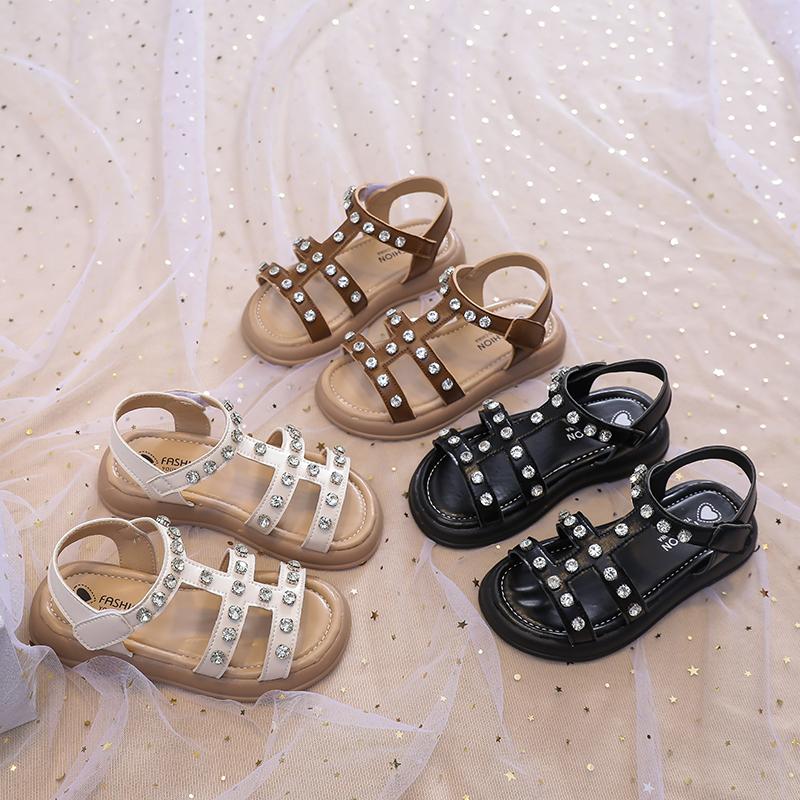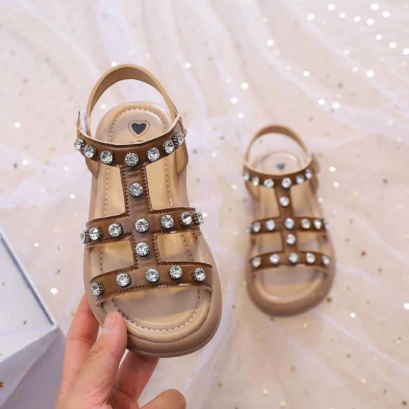 Детские ретро римские сандалии для девочек, сандалии со стразами, удобная мягкая подошва, летняя модная детская пляжная обувь с заклепками