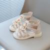 Сандалии для девочек с цветочным принтом, милые гладиаторские пляжные сандалии принцессы 2024 года, новинка лета в богемном стиле с цветами, детские сандалии на молнии, мягкие