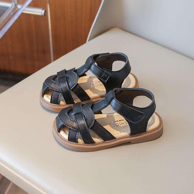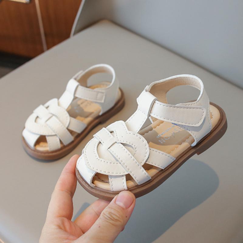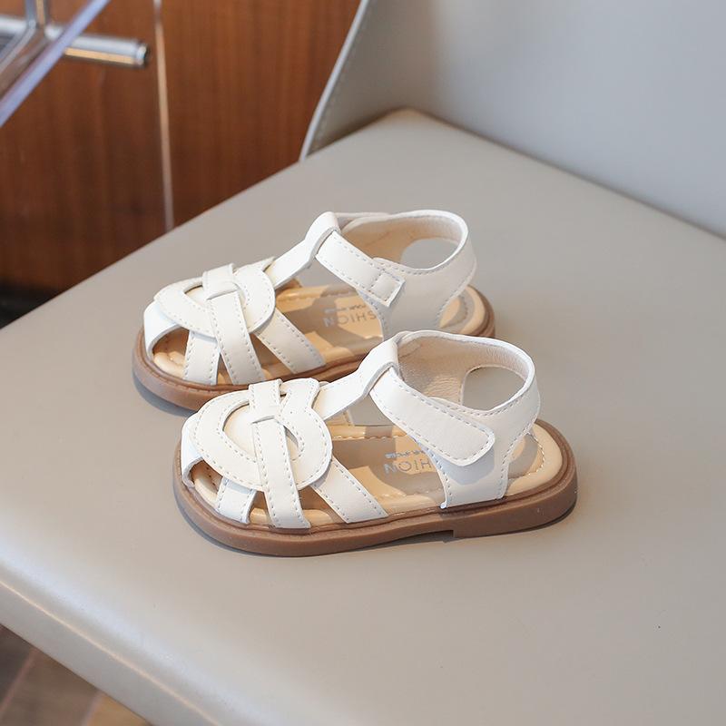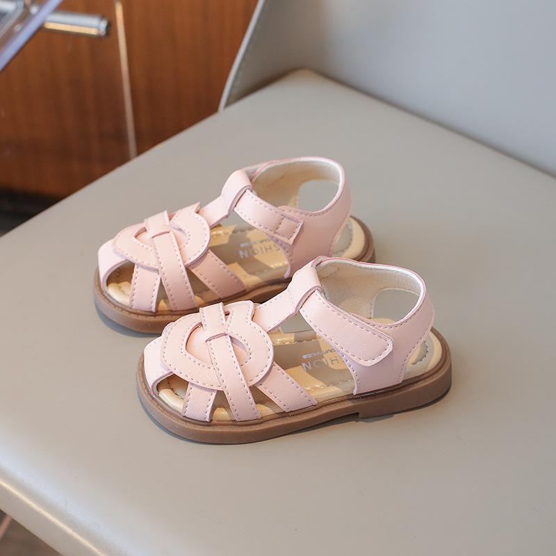 Летние сандалии для девочек 2024 года, новые детские сандалии с вырезами, модные детские сандалии в корейском стиле, мягкая подошва, пляжная обувь принцессы на плоской подошве