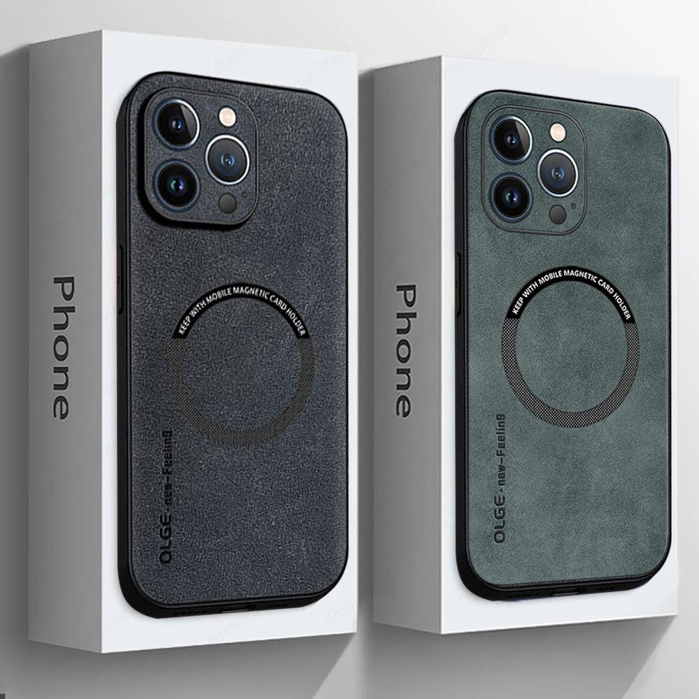 Роскошные кожаные противоударные чехлы для телефона Magsafe для iPhone 16 15 14 13 12 11 Pro Max 16e Plus Магнитная беспроводная зарядная крышка