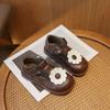 Обувь для девочек-принцесс 2024 года, весна-осень, детская повседневная кожаная обувь, модные универсальные милые детские туфли с цветочным принтом в стиле ретро на плоской подошве