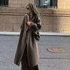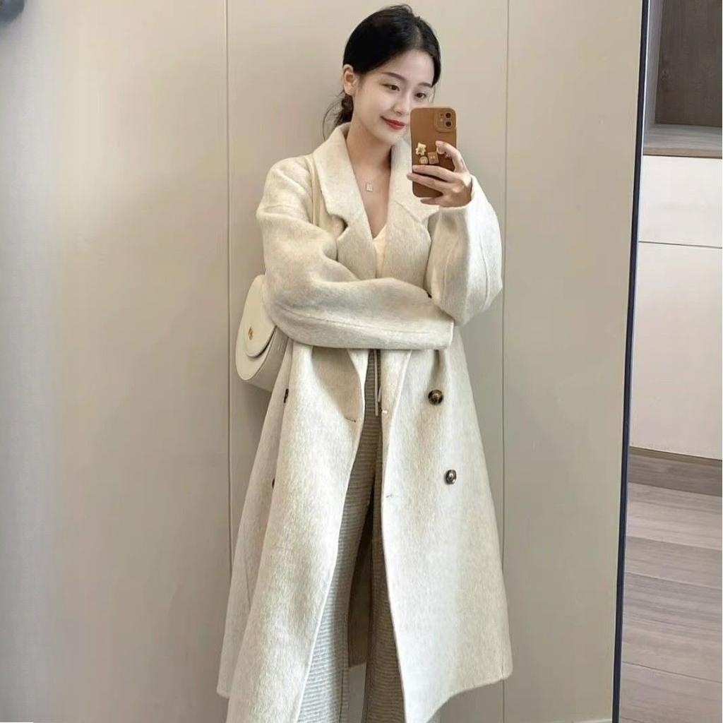 Женская шерстяная верхняя одежда средней длины в корейском стиле, свободное пальто в стиле преппи