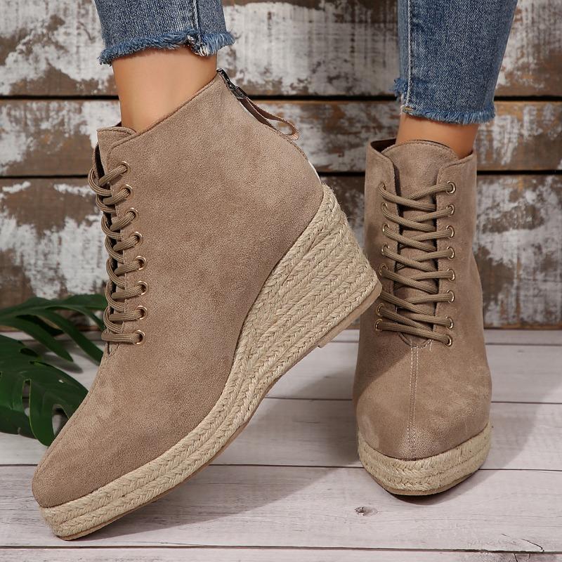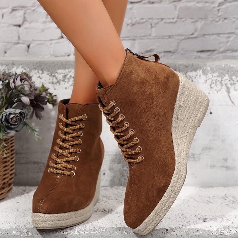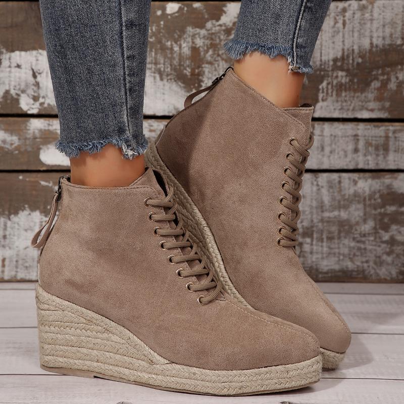 2024 Новые модные однотонные женские ботинки на танкетке со шнуровкой и толстой подошвой, удобная верхняя одежда, женская обувь с застежкой-молнией сзади