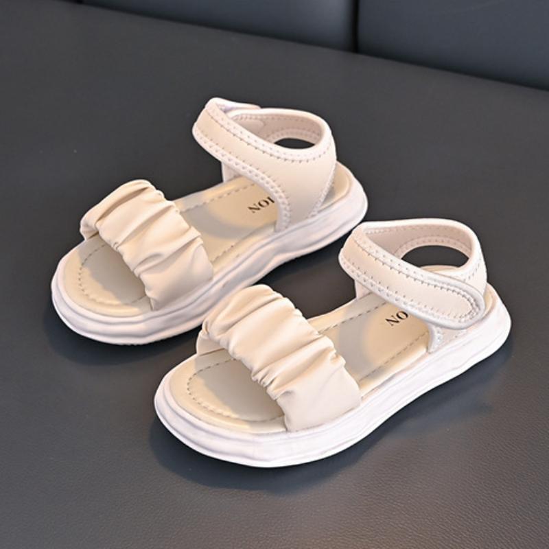 Детские сандалии для девочек, летние, для малышей, повседневная пляжная обувь, модные детские сандалии с открытым носком, для школы, толстая подошва, плоские, сандалии с мягкой подошвой
