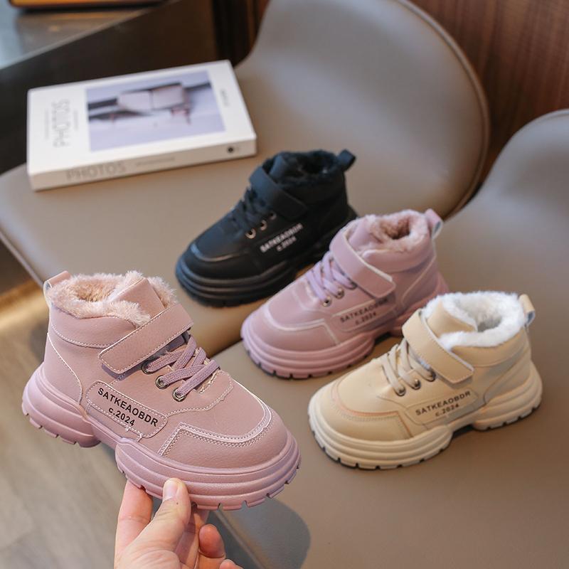 2024 Новые кроссовки для девочек из искусственной кожи с липучкой, модная детская повседневная обувь, Прямая поставка, детская спортивная обувь из хлопка, однотонная обувь для мальчиков