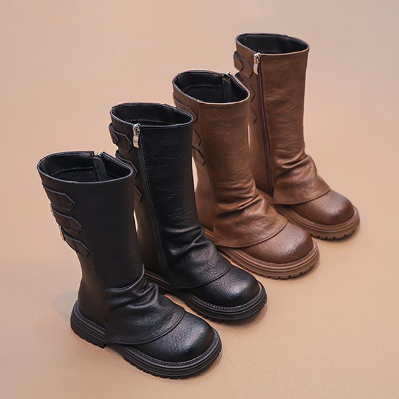 Сапоги для девочек до середины голени, модные классические детские длинные сапоги, простые, с толстой подошвой, универсальные, детские, повседневные кожаные сапоги 2024 года, новинка, хит