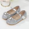 Детские туфли принцессы 2024 года, весна, новые мягкие туфли с кристаллами для маленьких девочек, туфли на плоской подошве, серебристые детские туфли Мэри Джейн для вечеринок, свадеб, шоу, ПУ