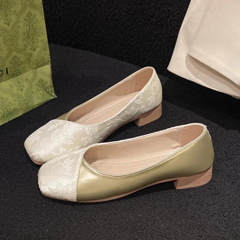 2024 Новый стиль Модные и удобные цветные женские туфли с квадратным носком на высоком каблуке Туфли на толстом каблуке Ленивые туфли