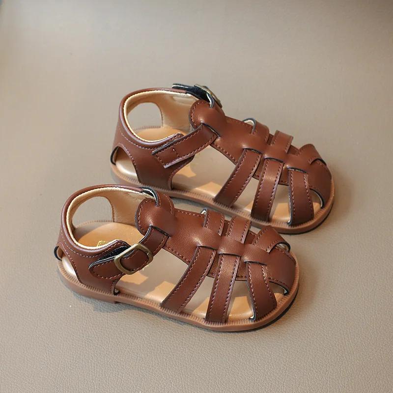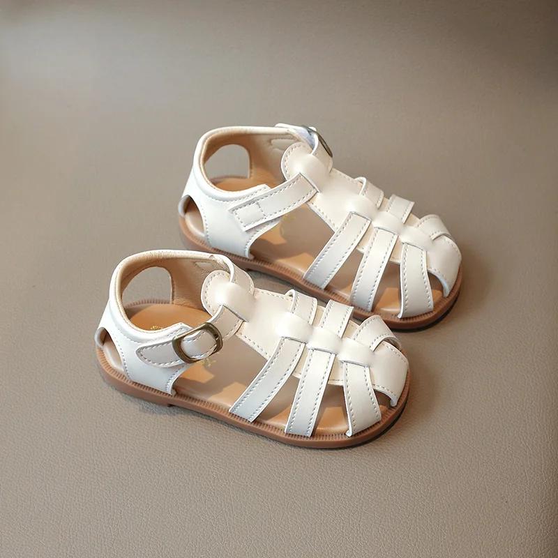 Летние новые детские сандалии для девочек 2024 года, модные удобные тканые вырезы, корейские простые универсальные римские классные пляжные туфли