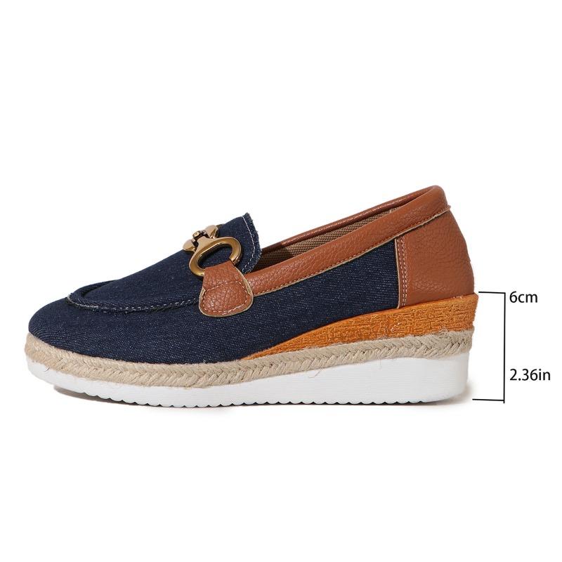 2024 Женская обувь Осенняя женская обувь Плоская подошва Круглый носок Однотонные простые джинсовые туфли с металлическими украшениями Низкий каблук Простые мокасины