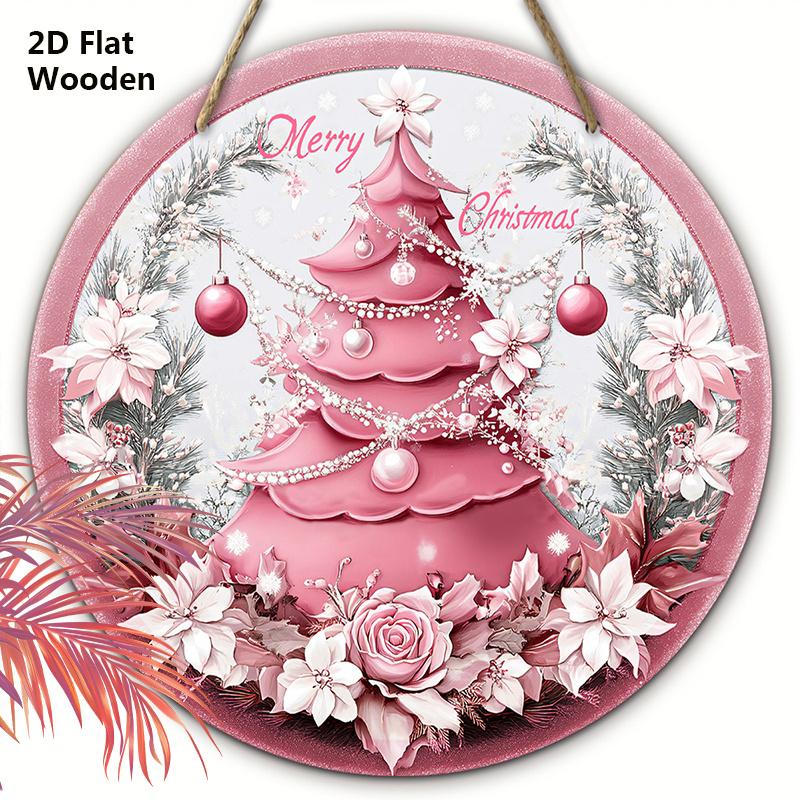 Деревянная розовая рождественская табличка, круглое украшение «Счастливого Рождества» для декора на входную дверь, стену, идеальный рождественский подарок