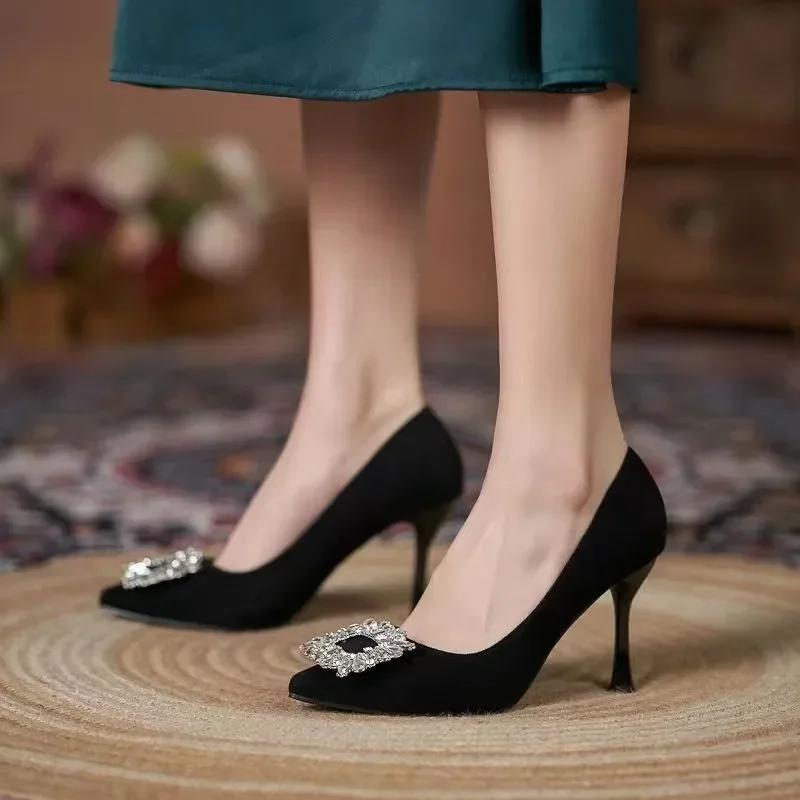 Повседневная модная женская обувь универсальные женские туфли на шпильках квадратные со стразами удобные высокие каблуки для женщин zapatos mujer
